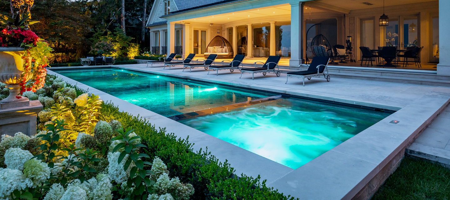 Объект с премиальной чашей, подсветкой и выверенной геометрией, поддерживающей архитектуру дома.