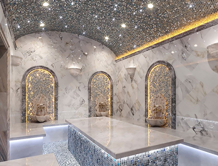 Проектирование и строительство хаммамов для SPA-комплексов, отелей и фитнес-клубов с учетом высокой эксплуатационной нагрузки.
