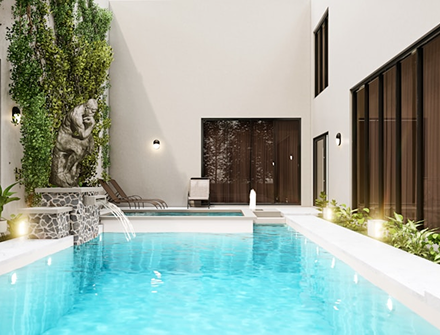 Проектируем бассейны для домов и вилл с удобной системой очистки, освещения и подогрева воды.