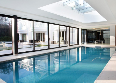 Просторная зона отдыха с панорамным остеклением, системой фильтрации и точной интеграцией в архитектуру дома.