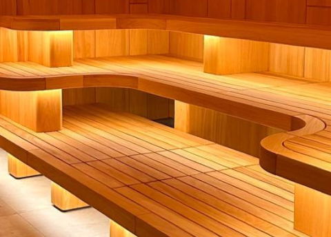Полки, обшивка, декоративные элементы и материалы, рассчитанные на банный режим эксплуатации.